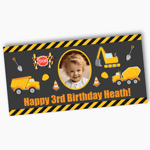 Get ready to build unforgettable memories with our Personalised Construction Party Banners with Photo! Perfect for your little builder's birthday celebration, these custom banners let you upload a photo of the guest of honor using our user-friendly online editor and preview your unique design instantly.
