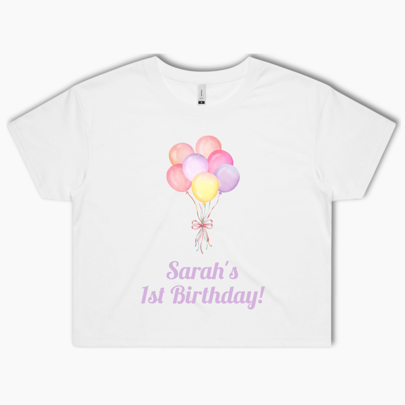 Personalised Pastel Rainbow Balloons Party Crop Shirt