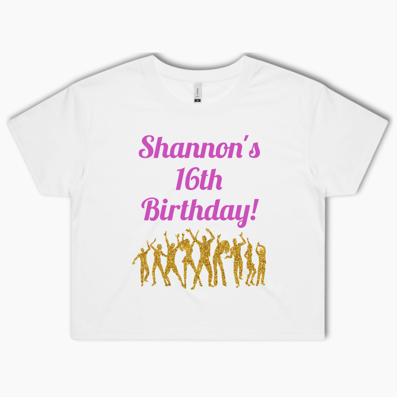 Celebrate in style with an outfit that's as extraordinary as your event. Order your Personalised Dance Party Crop Shirt today and embrace your celebration with flair and confidence.