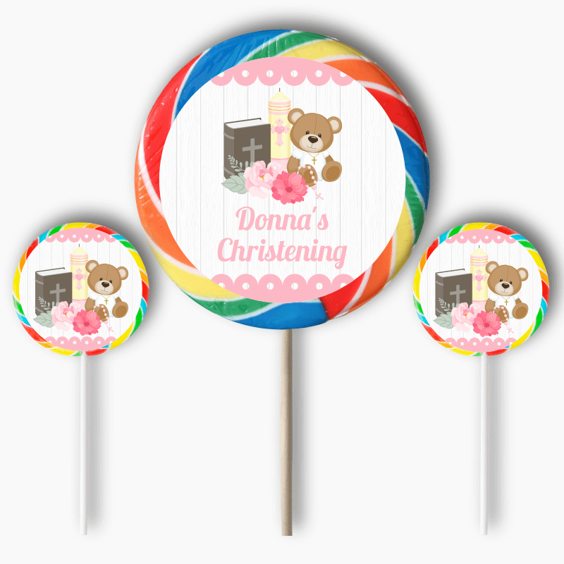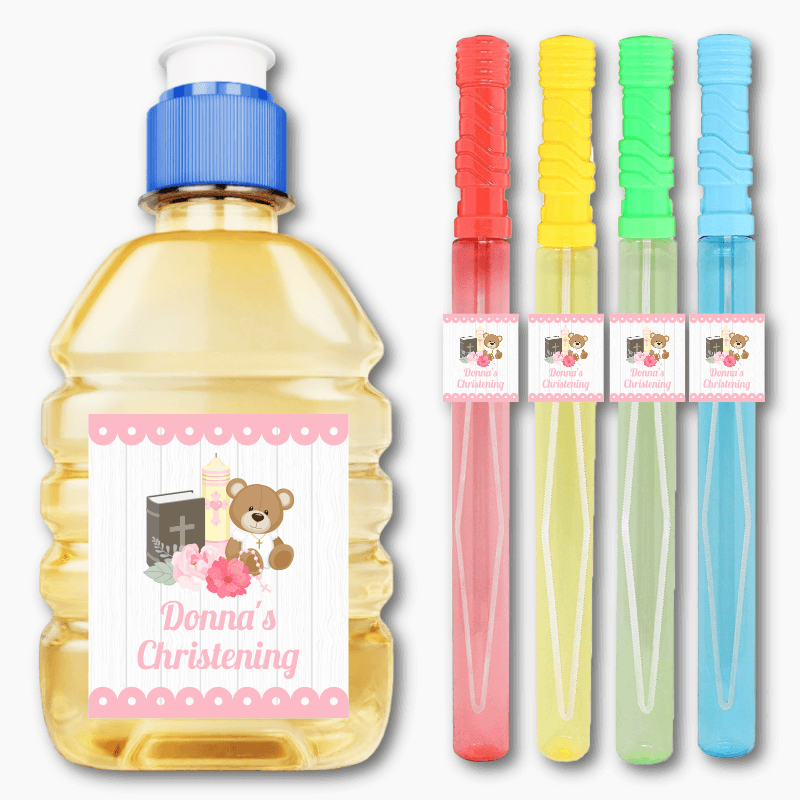 Personalised Girls Teddy Bear Christening Tic Tac Labels