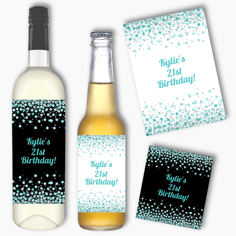 from $14.69Personalised Turquoise Green Confetti Wine & Beer Labels