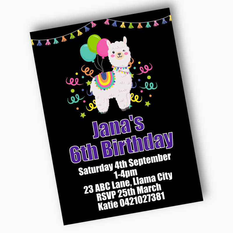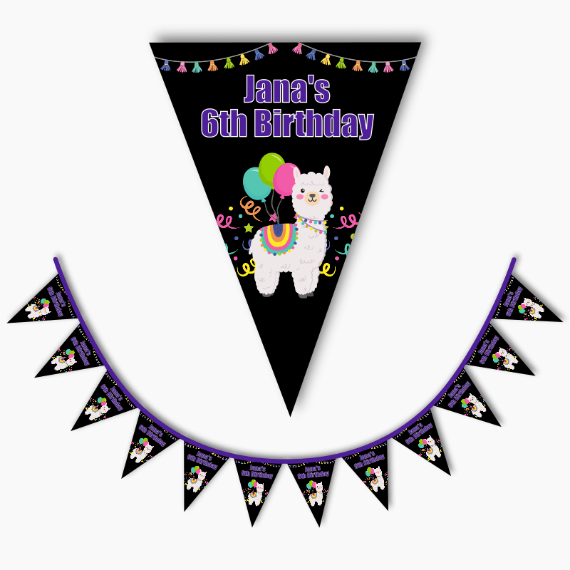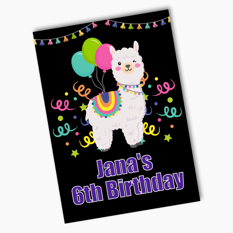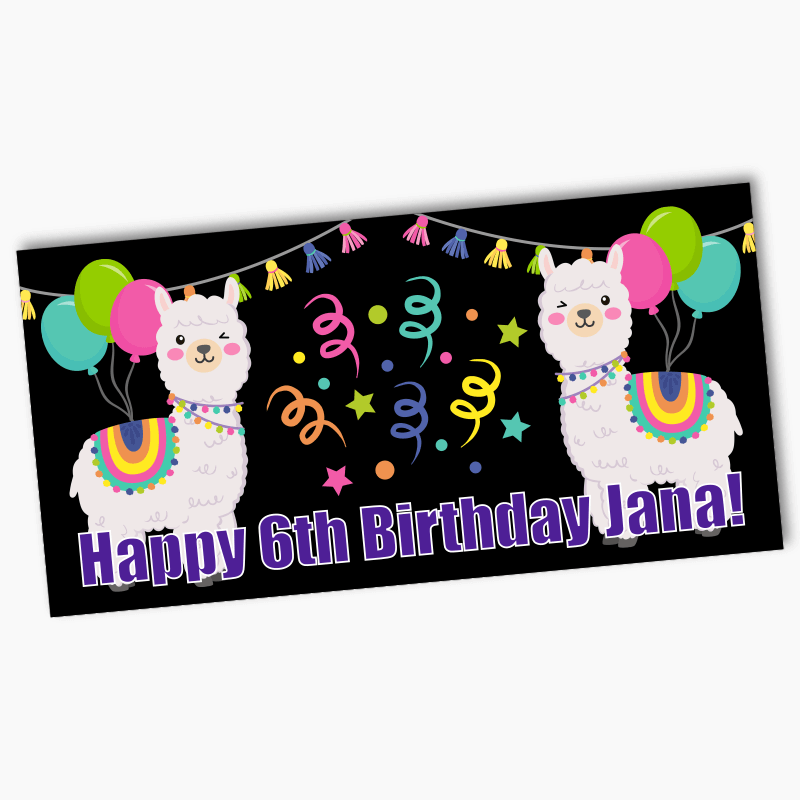 Our Fun Llama themed Party Decorations are perfect for both boys and girls parties with its unisex colours. The bright and colourful design features an adorable Llama with Balloons Clipart by tereveladesign on a Black background with Rainbow Streamers and Confetti. You can customize the decorations with your choice of complementing fonts colours and custom message, making it uniquely yours.