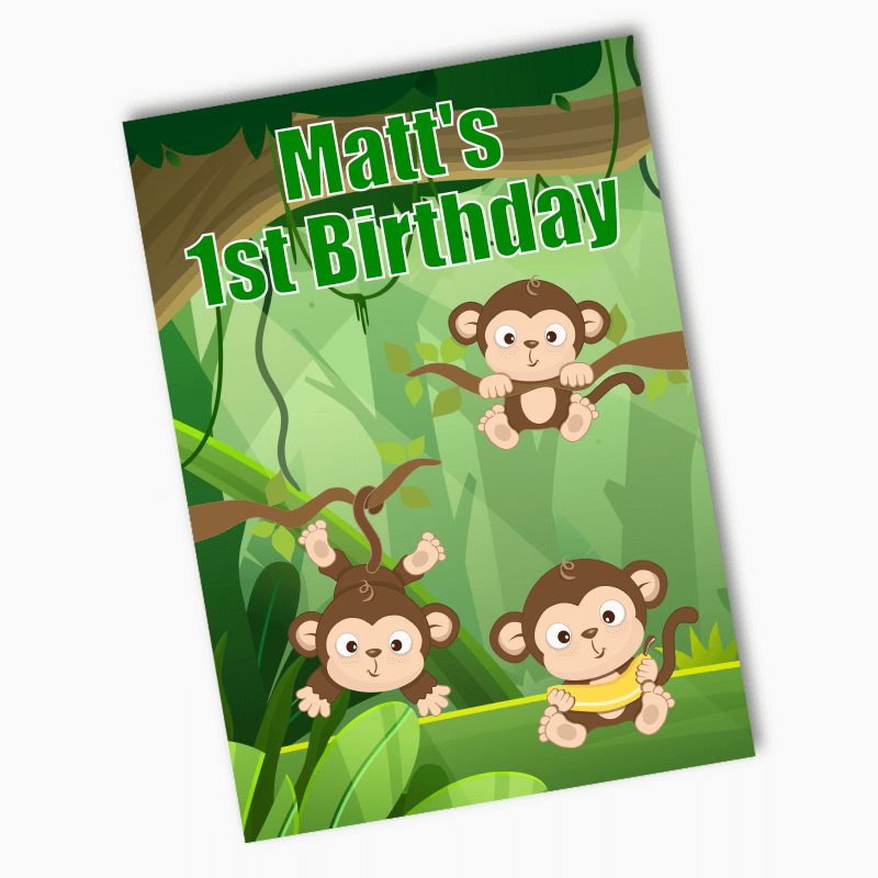 Each party sign is printed with your own custom message, including your name and occasion, making it the perfect addition to any celebration. Our Personalised Monkey Birthday Party Posters will add a touch of fun and personality to your event.