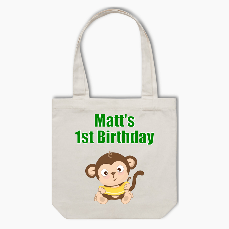 Enhance your celebration accessories with our Custom Monkey Party Tote Bag, specially designed to bring a personalised sparkle to your festivities. This tote bag is the ultimate choice for incorporating a custom touch that flawlessly aligns with your party theme, making it an indispensable accessory for any celebratory event.