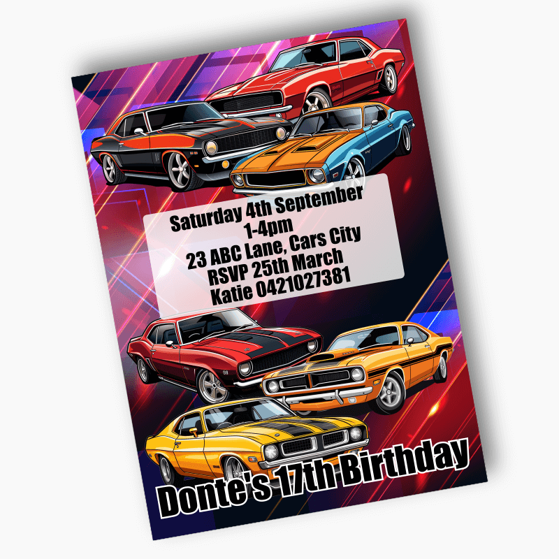 Our Personalised Muscle Cars Party Decorations are the ultimate choice for any motorsport or car enthusiast's celebration. These Muscle Car Party Supplies are meticulously designed to be personalised with the recipient's name, age, or custom text, adding a personalised touch to their special day.