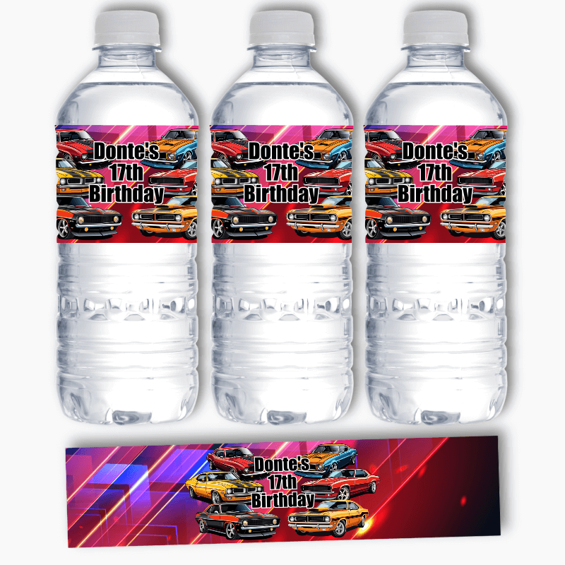 $41.99Personalised Muscle Cars Party Water Bottle Labels