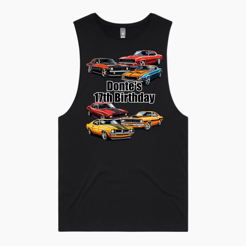 from $20.99Personalised Muscle Cars Birthday Party Tank Singlet