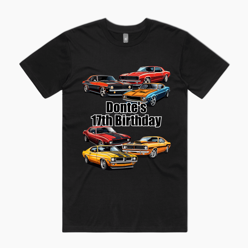 from $29.39Personalised Muscle Cars Birthday Party Adults T-Shirt