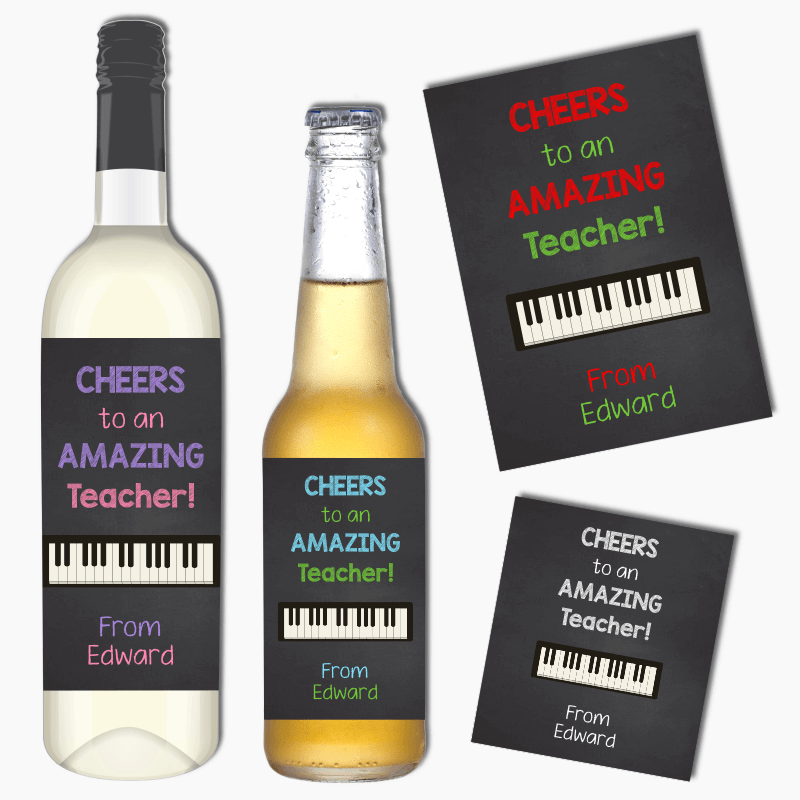 Our commitment to superior quality extends to our professional printing services and swift shipping. Plus, with Afterpay available, you have the convenience of paying in instalments. Give a gift that resonates and surprise your child's music teacher with our elegant and personalised wine and beer labels.