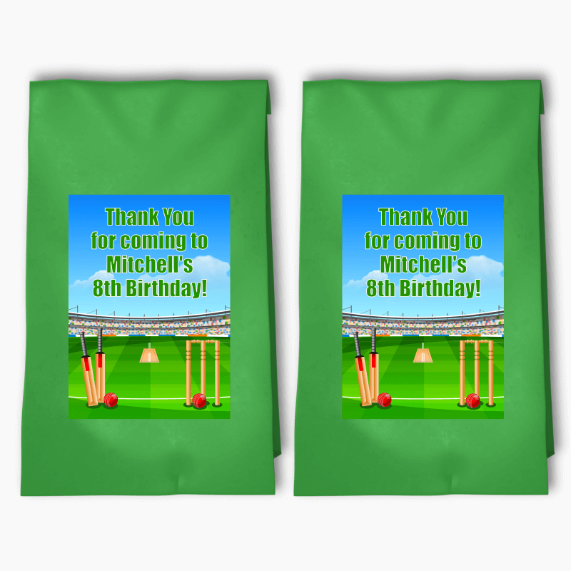 Are you looking for a way to make your party unforgettable? Look no further than our Personalised Cricket Birthday Party Bags & Labels! Our Loot Bags are the perfect way to thank your guests for coming and to send them home with a little something extra.