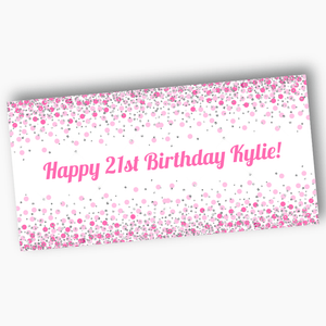 All of our banners are made in Australia, ensuring the highest quality and fastest turnaround times. Make your next event truly unforgettable with our Personalised Pink Confetti Party Banners, and create memories that will last a lifetime. Order your custom Party Banners today and let the festivities begin!