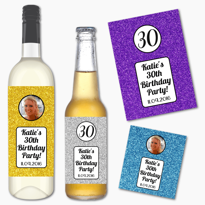 from $10.99Personalised Glitter Print Birthday Party Wine & Beer Labels