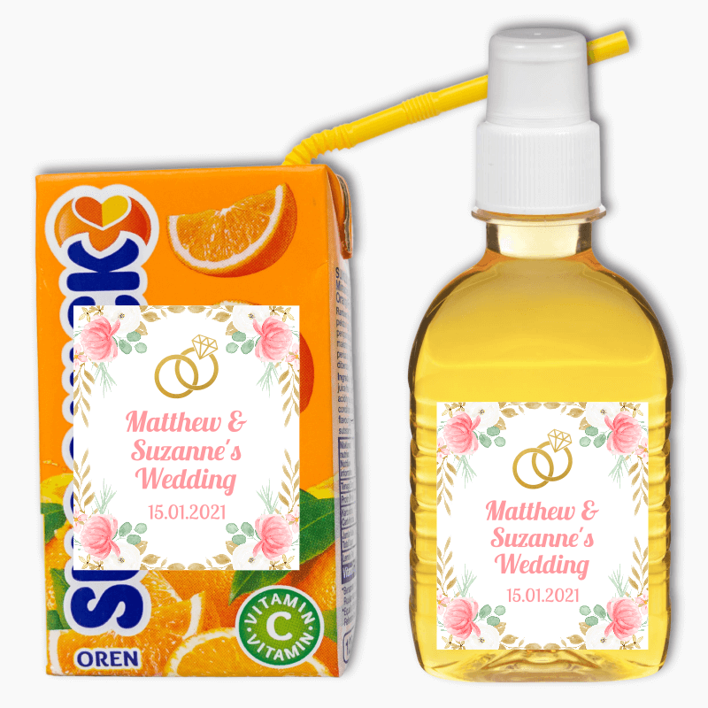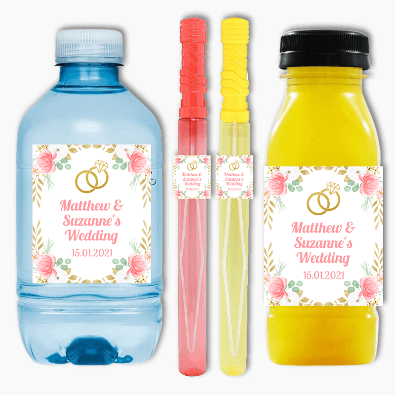 Looking for a fun and versatile way to add a personal touch to your party decorations? Look no further than our Personalised Pink & Gold Floral Wedding Rectangle Stickers! These customised stickers are perfect for decorating drinks, favours, loot boxes, and even bubble wands!