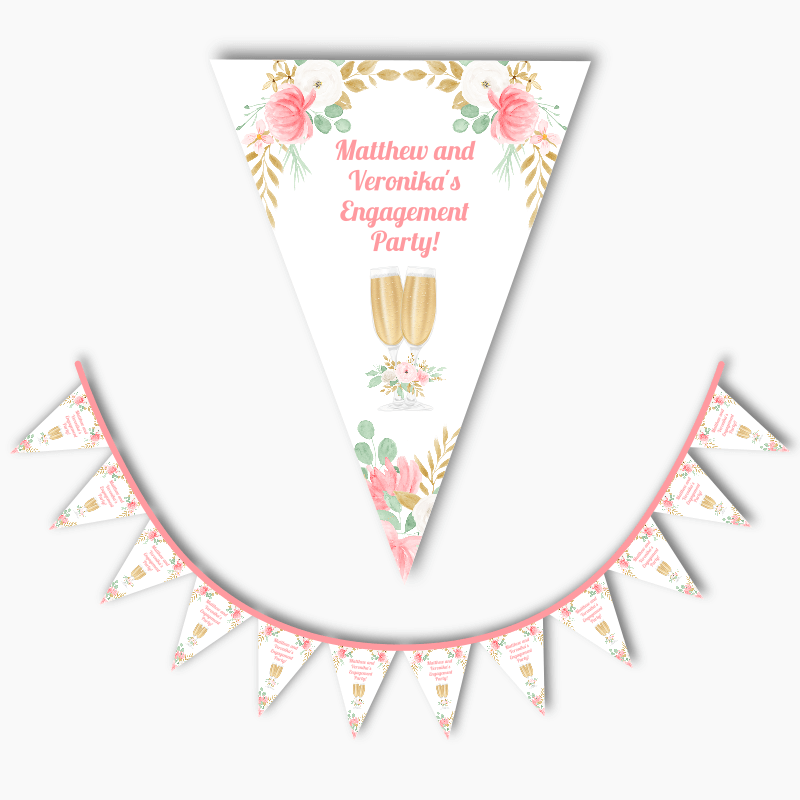 So why settle for boring party decor when you can have our Pink & Gold Floral Engagement Party Flag Bunting? With its high-quality construction, customisation options, and ease of use, it's the perfect addition to any celebration. Make your next occasion special and unforgettable with our Pink & Gold Floral Engagement Party Flag Bunting.