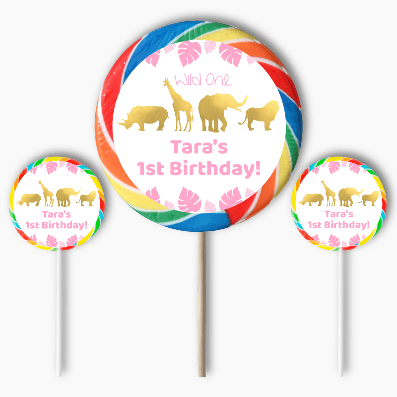from $20.99Personalised Pink & Gold Safari Animals Round Stickers