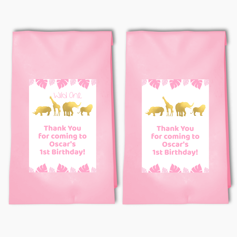 from $17.59Personalised Pink & Gold Safari Animals Party Bags & Labels