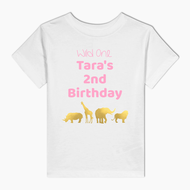 from $15.74Personalised Pink & Gold Safari Animals Party Kids T-Shirt