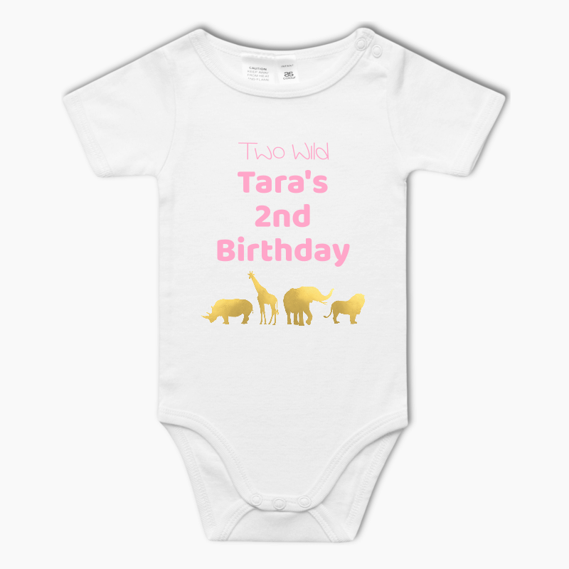 from $16.79Personalised Pink & Gold Safari Animals Baby One-Piece Romper