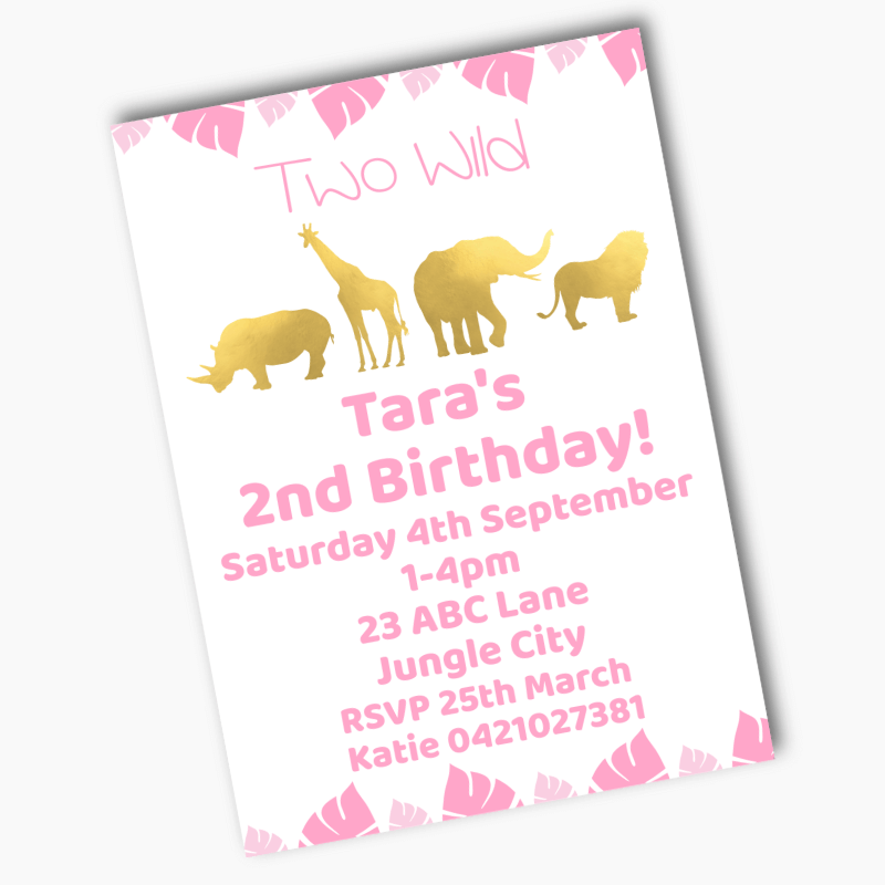 $41.99Personalised Pink & Gold Safari Animals Party Invites