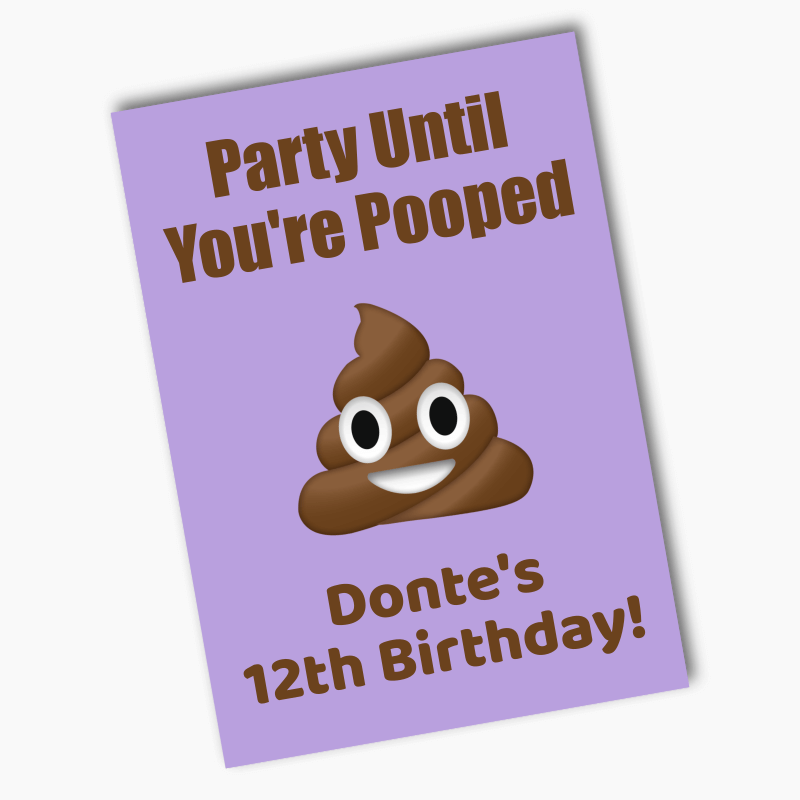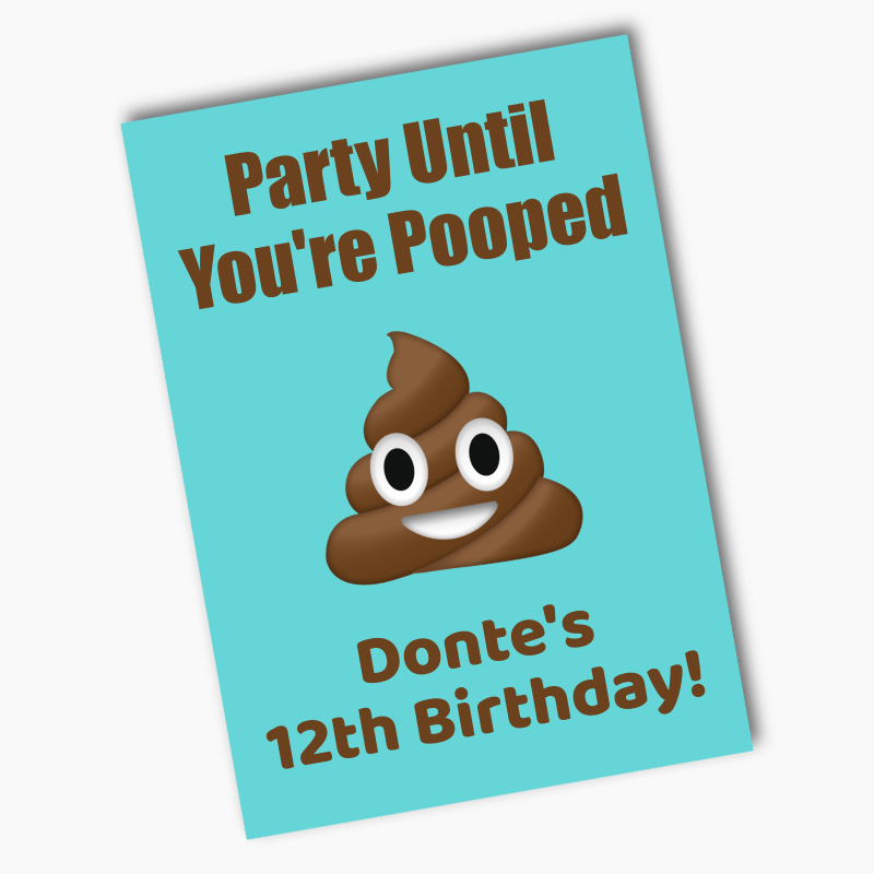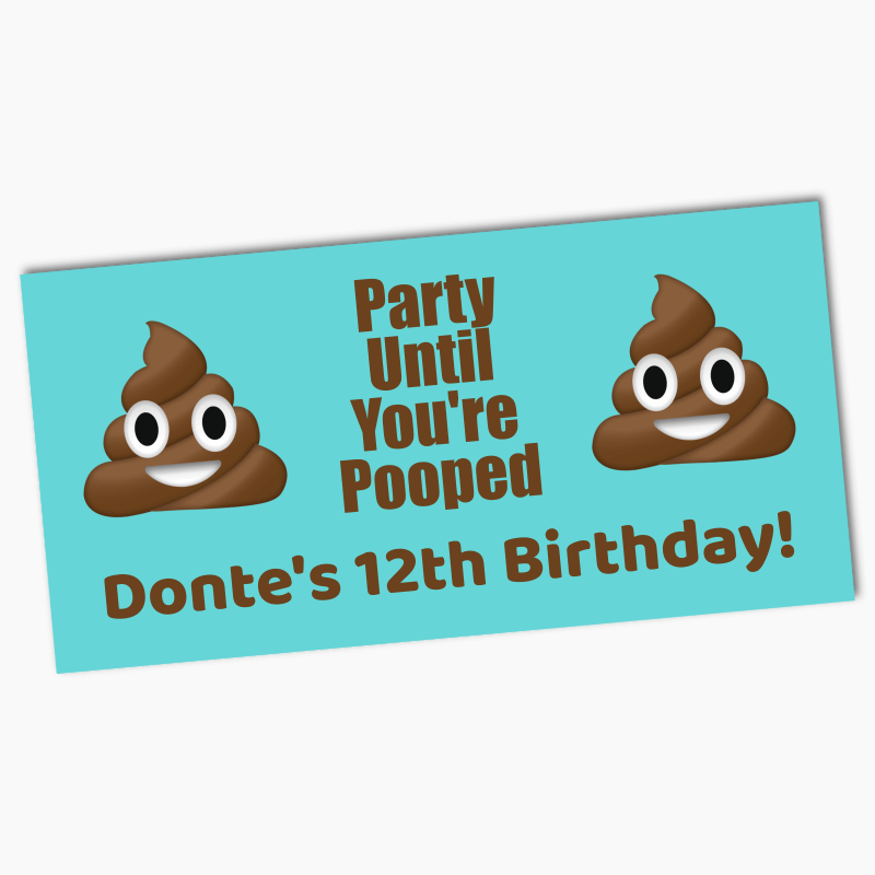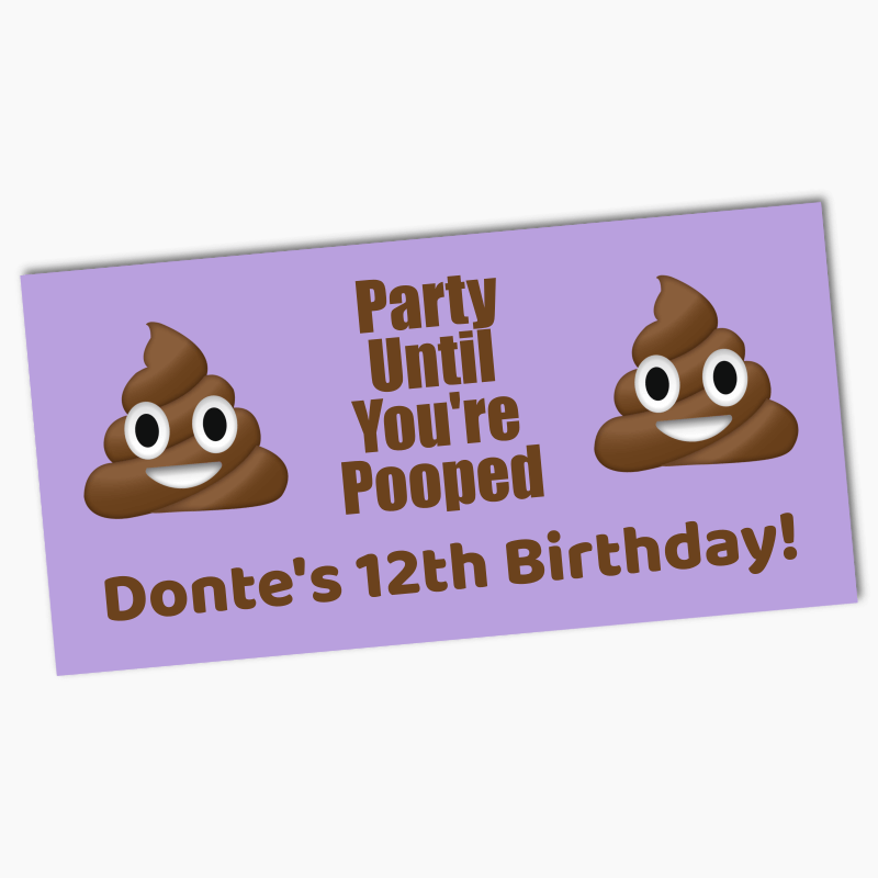Featuring a fun design with a prominent poop emoji and the catchy phrase, "Party Until You're Pooped," these decorations are available in two vibrant colors: Purple and Aqua. Whether you're hosting a party for girls or boys, these colors are sure to complement any celebration.