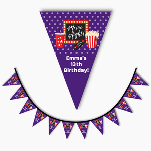 Check Out our Full Range of Personalized Purple Movie Night Birthday Party Banners, Decorations & Labels. We also have Discounted Party Packs Available at Amazing Prices!