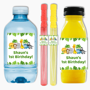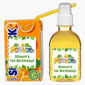 Looking for a fun and versatile way to add a personal touch to your party decorations? Look no further than our Personalised Jungle Animals Party Rectangle Stickers! These customised stickers are perfect for decorating drinks, favours, loot boxes, and even bubble wands!