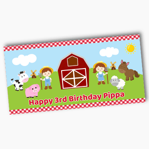 Make your special occasion truly unforgettable with our Personalised Barnyard Farm Animals Party Banners! Our high-quality banners are the perfect centrepiece for any event and are guaranteed to make your guests feel right at home. With three sizes to choose from, you can select the perfect banner for your occasion.