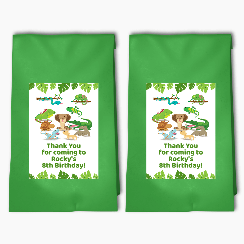 Are you looking for a way to make your party unforgettable? Look no further than our Personalised Reptiles Birthday Party Bags & Labels! Our Loot Bags are the perfect way to thank your guests for coming and to send them home with a little something extra.
