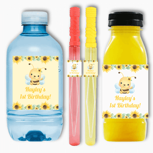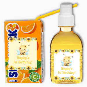 Looking for a fun and versatile way to add a personal touch to your party decorations? Look no further than our Personalised Sunflower & Honey Bee Party Rectangle Stickers! These customised stickers are perfect for decorating drinks, favours, loot boxes, and even bubble wands!