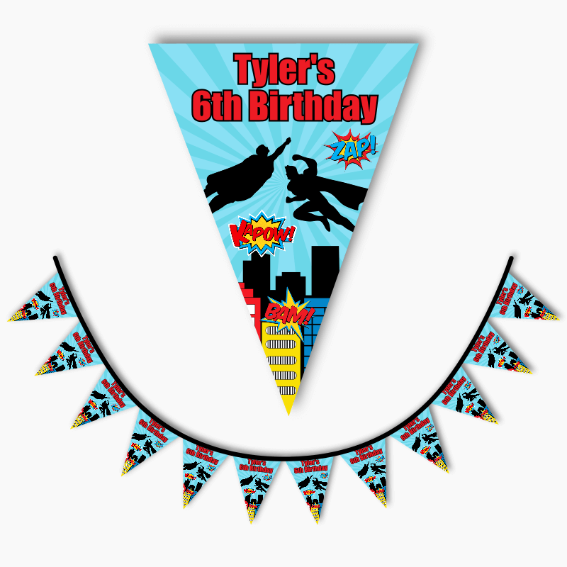 Personalised Superheroes Birthday Party Flag Bunting