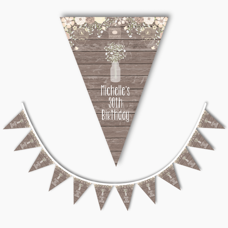 from $41.99Personalised Rustic Timber & Baby's Breath Party Flag Bunting
