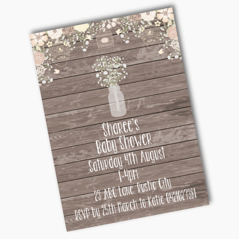 from $20.99Personalised Rustic Timber & Baby's Breath Party Invites