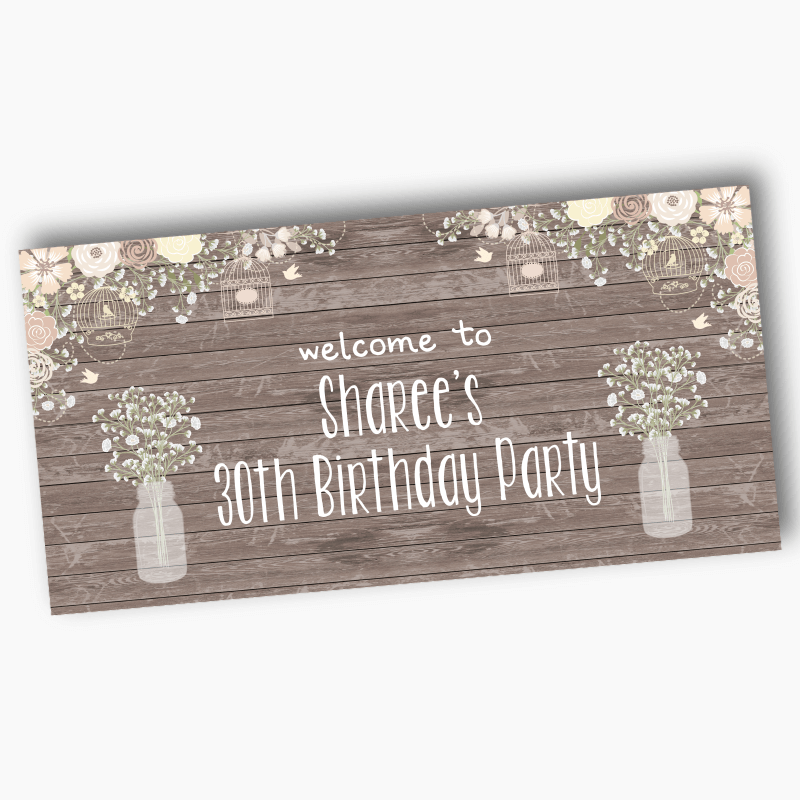 Personalised Rustic Timber & Baby's Breath Party Banners