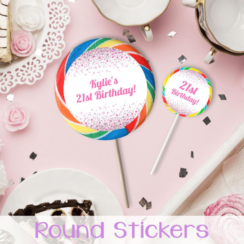 These super versatile round stickers are pretty much multi-purpose. Just peel and stick them on lollipops or use them to seal party bags or even invites. Available in 3.5cm & 7cm, these Round Stickers are printed on high-resolution adhesive Vinyl, making them waterproof. The 3.5cm Stickers are not customised due to their small size and come with an image. The 7cm Stickers are customisable to your occasion.