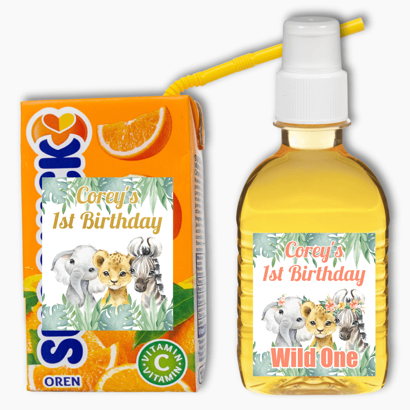 Looking for a fun and versatile way to add a personal touch to your party decorations? Look no further than our Personalised African Animals Party Rectangle Stickers! These customised stickers are perfect for decorating drinks, favours, loot boxes, and even bubble wands!