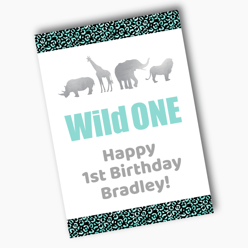 Check Out our Full Range of Personalized Aqua & Silver Wild One Birthday Party Banners, Decorations & Labels. We also have Discounted Party Packs Available at Amazing Prices!