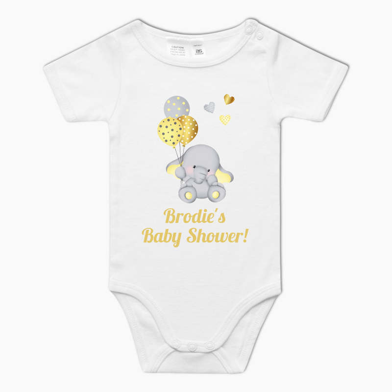 Transform your baby's celebration into an unforgettable event with our Custom Baby Elephant Party Baby One-Piece Rompers. These specially designed rompers offer a charming and personalised touch to your little one's attire, ensuring they look their cutest while perfectly aligning with your party theme. A must-have for any festive gathering.