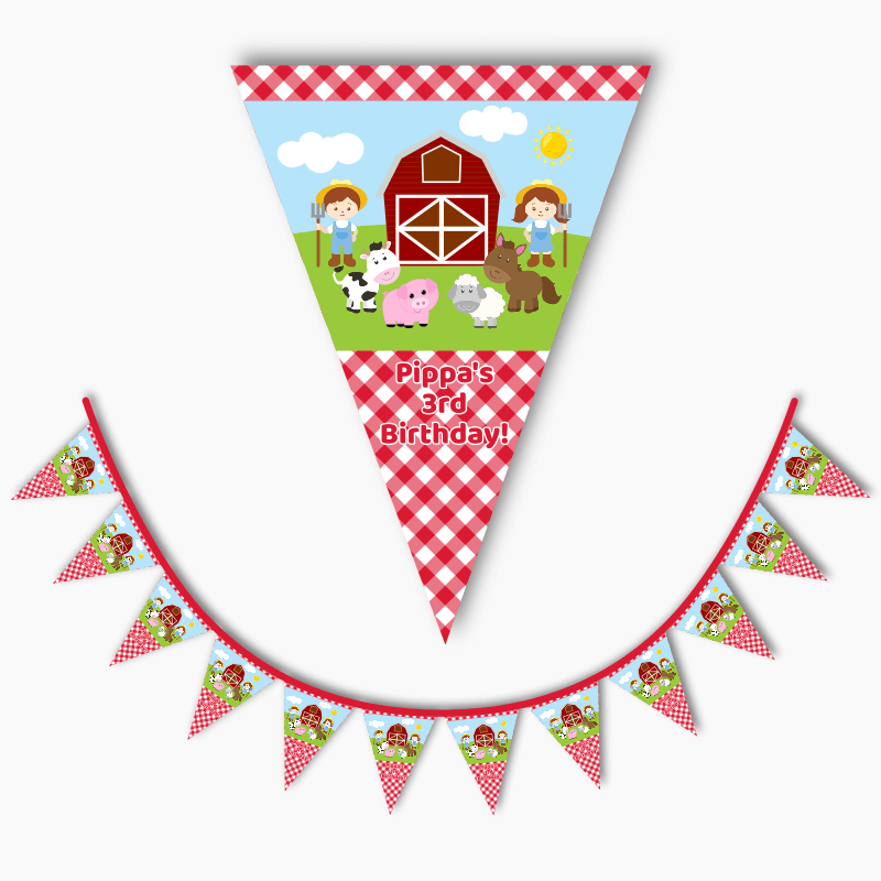 Are you tired of generic party decorations that lack personality? Look no further than our Personalised Barnyard Farm Animals Birthday Party Flag Bunting! Perfect for any occasion, our bunting is customisable with your choice of text and images. This is not your ordinary bunting decoration - it's a unique and customisable design that will make your special occasion stand out from the rest.