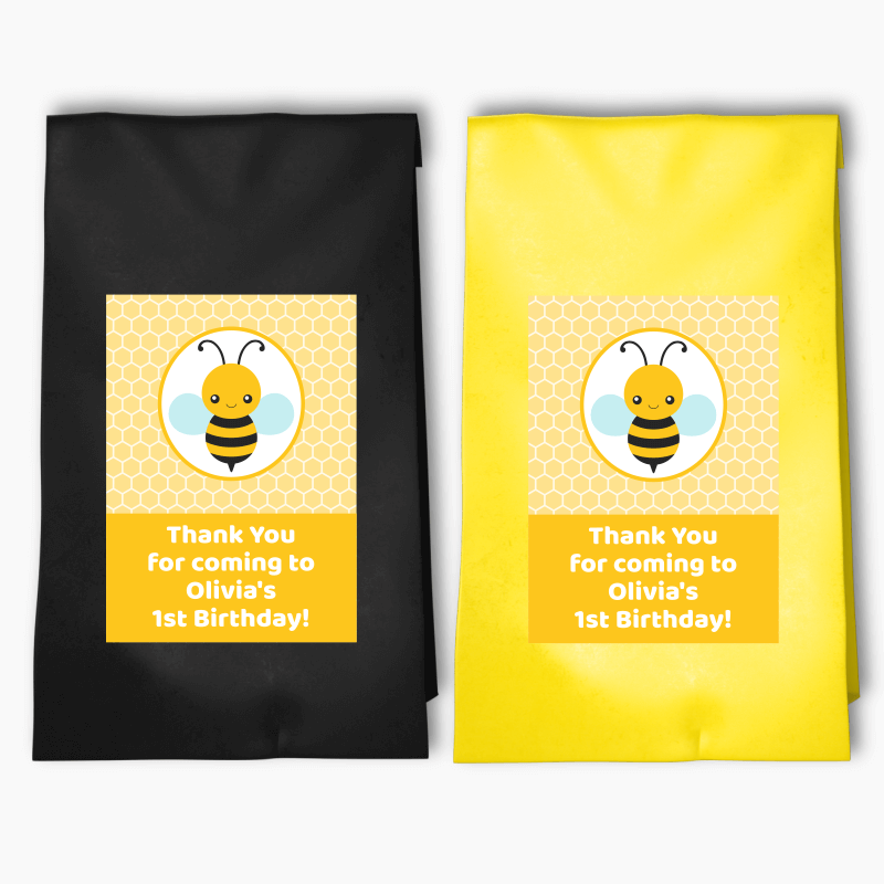 Are you looking for a way to make your party unforgettable? Look no further than our Personalised Buzzy Bee Party Bags & Labels! Our Loot Bags are the perfect way to thank your guests for coming and to send them home with a little something extra.