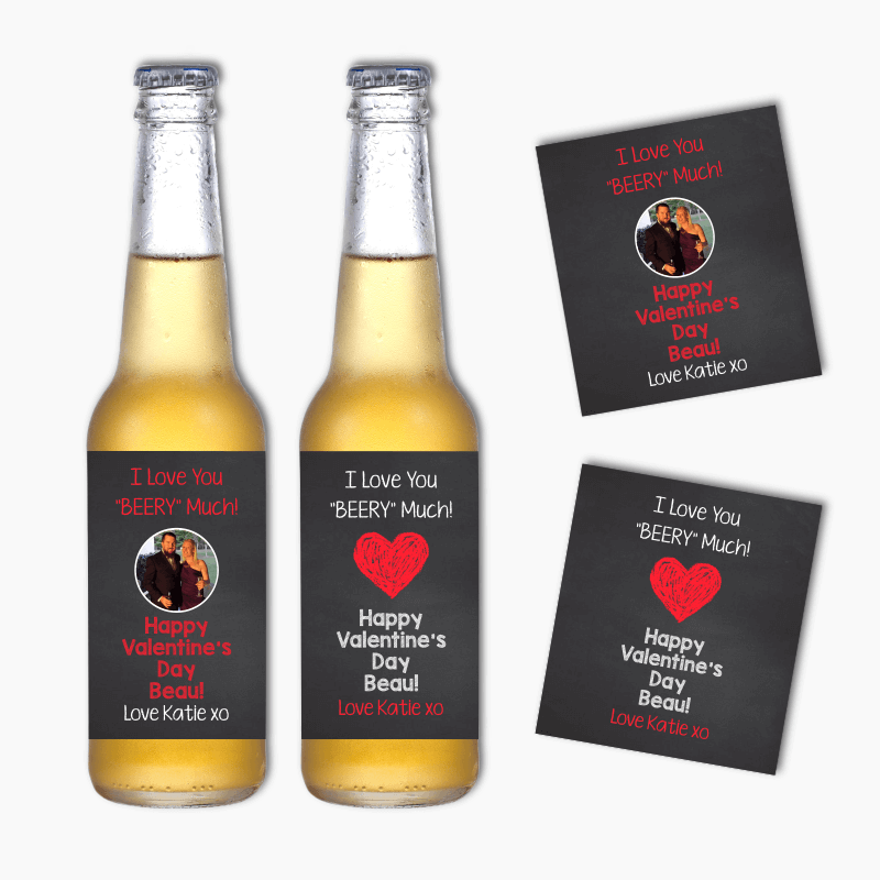 Celebrate the season of love with a uniquely charming and personalised touch to your Valentine's Day gifting. Our Beery Much Valentines Day Gift Beer Labels offer the perfect blend of affection and creativity for the special man in your life. Transform an ordinary gift into an extraordinary one by adding a personal twist to his favorite brew with our custom-printed beer bottle labels.