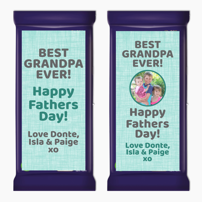 With professional printing quality, fast shipping, and Afterpay available, our 'Best Grandpa Ever' Cadbury Chocolate labels are a Father's Day present that combines convenience and thoughtfulness. Make this Father's Day unforgettable with a gift your grandpa will cherish.
