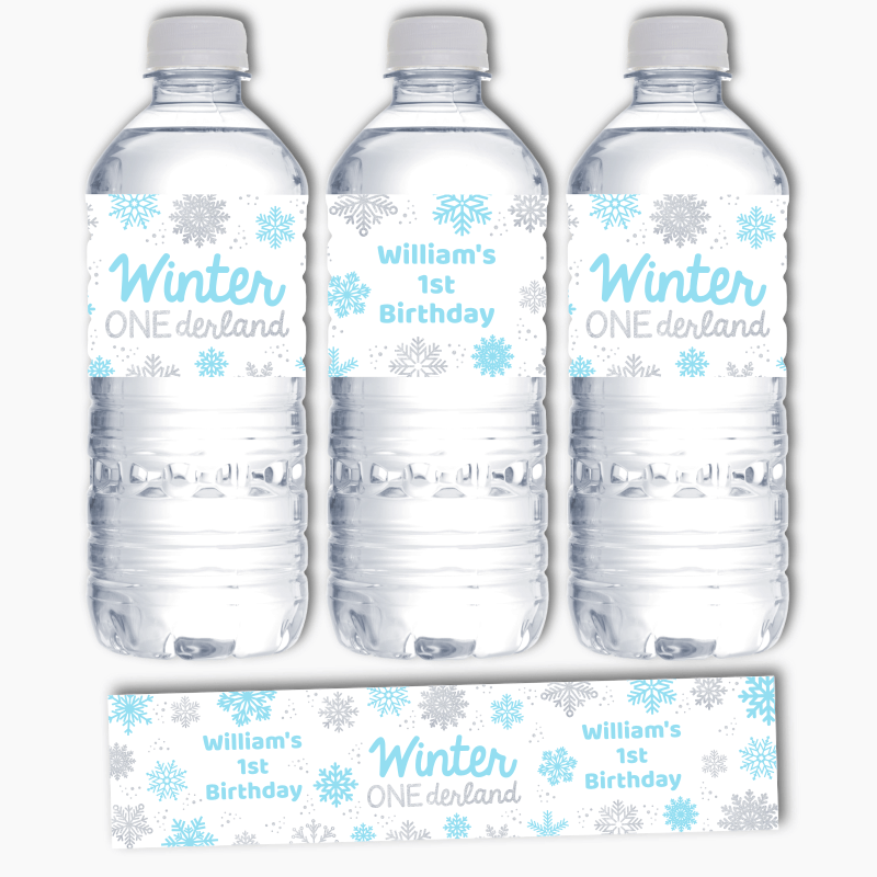 Are you looking to add a personal touch to your next party or special occasion? Look no further than our Personalised Blue Winter ONEderland Party Water Bottle Labels! These unique labels are the perfect way to elevate your event and add a touch of style and sophistication to your party décor. We understand the importance of party styling, which is why our team of experts has designed these Water Labels for Parties to complement your theme and make your event unforgettable.