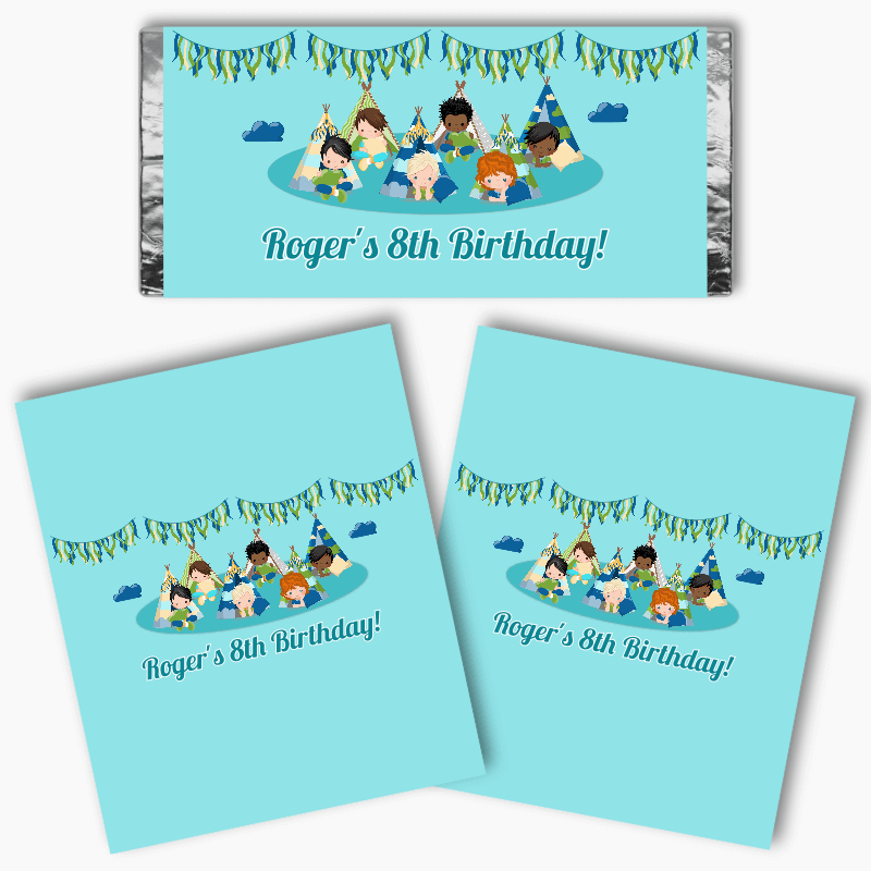 So why wait? Check out our helpful guide for tips on how to wrap your chocolate bars with our personalised labels or watch our video to see just how easy it is. Don't settle for boring, generic party favours. Make your next event unforgettable with our Personalised Boys Slumber Birthday Party Mini Chocolate Labels!
