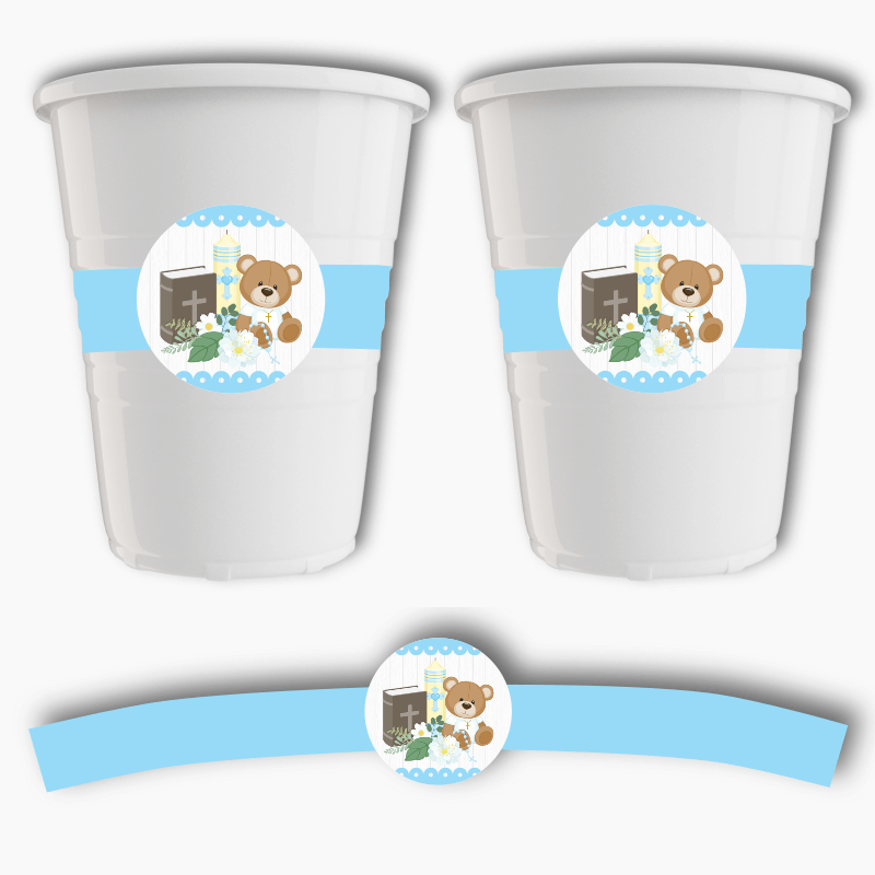 Get ready to take your party to the next level with our Boys Teddy Bear Christening Cup Stickers! These stickers are the perfect way to add a fun and stylish touch to your party tables. With their vibrant and eye-catching designs, your guests won't be able to resist the temptation to snap a photo and share it on social media!