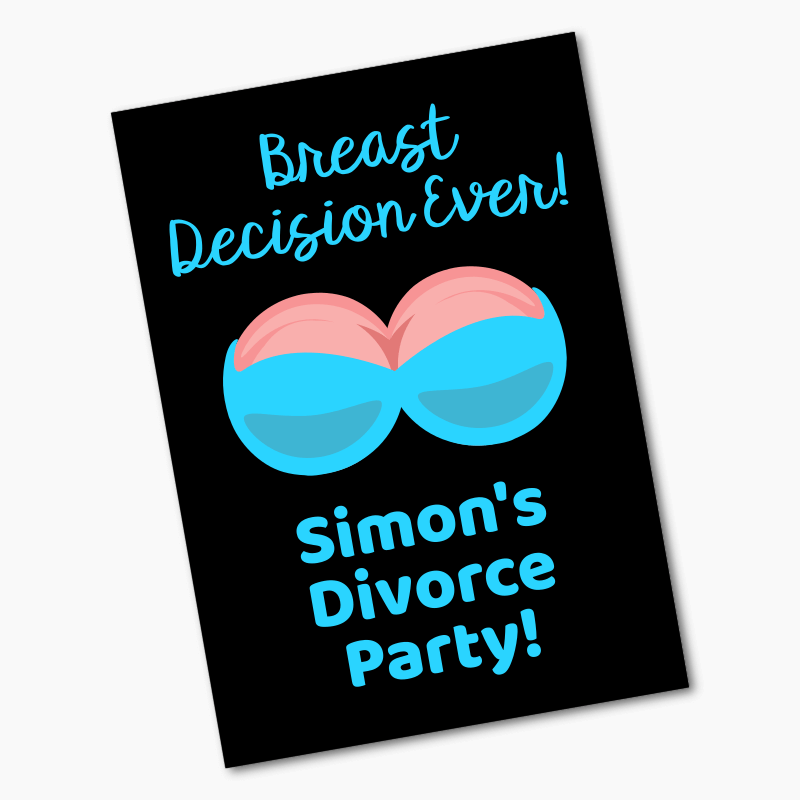 Each party sign is printed with your own custom message, including your name and occasion, making it the perfect addition to any celebration. Our Personalised Breast Decision Ever Divorce Party Posters will add a touch of fun and personality to your event.