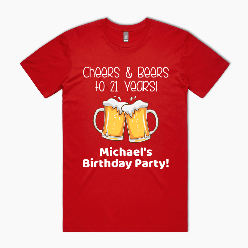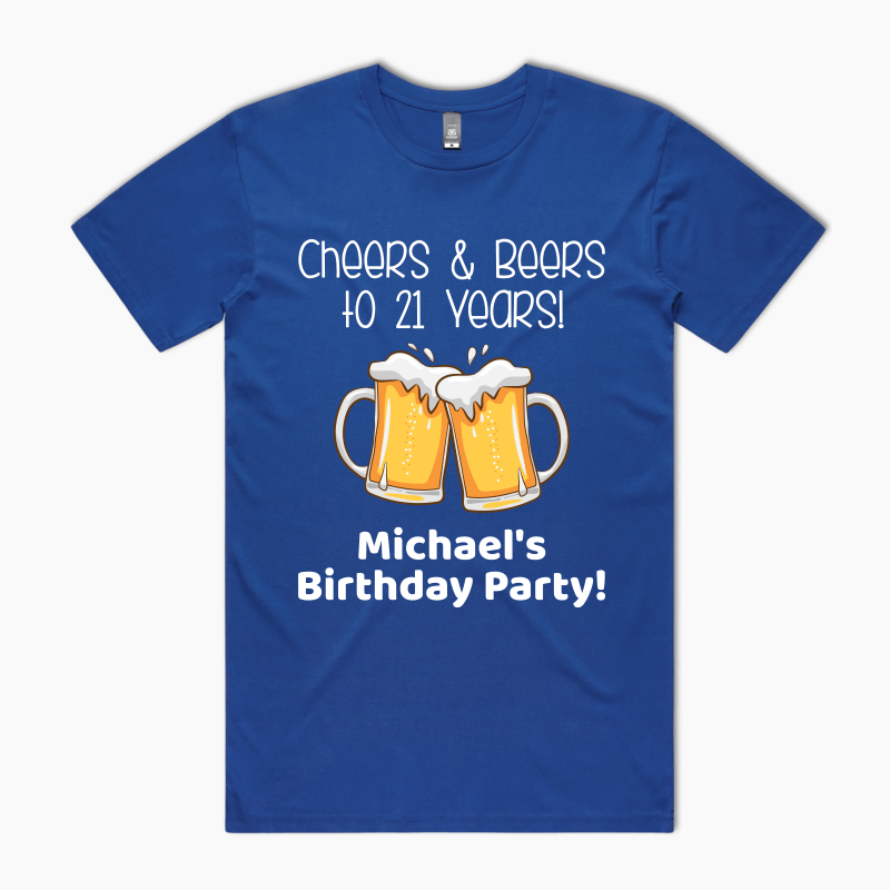 Elevate your event attire with our Custom Cheers & Beers Birthday Party Adult T-Shirt, tailor-made to infuse your celebration with a distinctive flair. This adult-sized tee is your go-to choice for adding a personalised touch that perfectly complements your party theme, transforming it into an essential piece for any festive occasion.