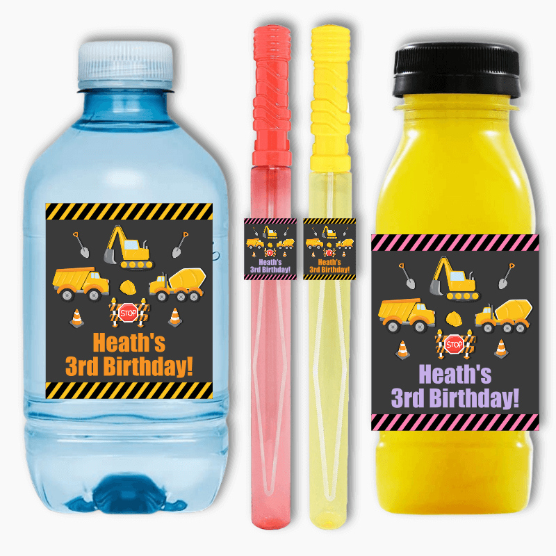 Looking for a fun and versatile way to add a personal touch to your party decorations? Look no further than our Personalised Construction Birthday Party Rectangle Stickers! These customised stickers are perfect for decorating drinks, favours, loot boxes, and even bubble wands!