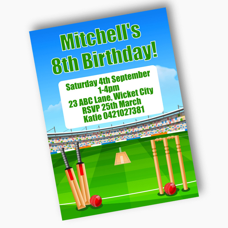 Are you looking for a way to make your party stand out from the rest? Look no further than our Personalised Cricket Birthday Party Invites! Our amazing invitations are designed to impress your guests from the moment they receive them.