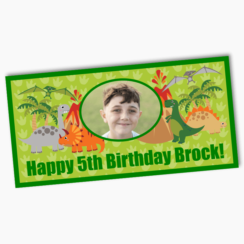 Make your special occasion truly unforgettable with our Personalised Dinosaur Party Banners with Photo! Our high-quality banners are the perfect centrepiece for any event, guaranteed to make your guests feel right at home. With three sizes to choose from, you can select the ideal banner for your celebration.