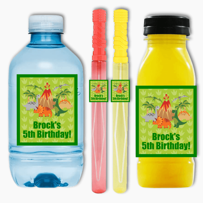 Looking for a fun and versatile way to add a personal touch to your party decorations? Look no further than our Personalised Dinosaur Birthday Party Rectangle Stickers! These customised stickers are perfect for decorating drinks, favours, loot boxes, and even bubble wands!